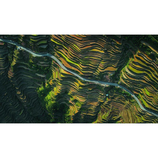 The Way Of Terraced Fields Black Modern Wood Framed Art Print with Double Matting by Tianqi