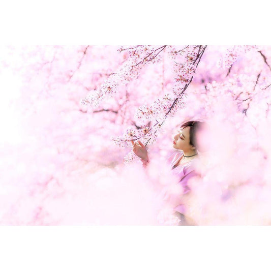 Sakura Black Modern Wood Framed Art Print with Double Matting by Washimi, Masatoshi