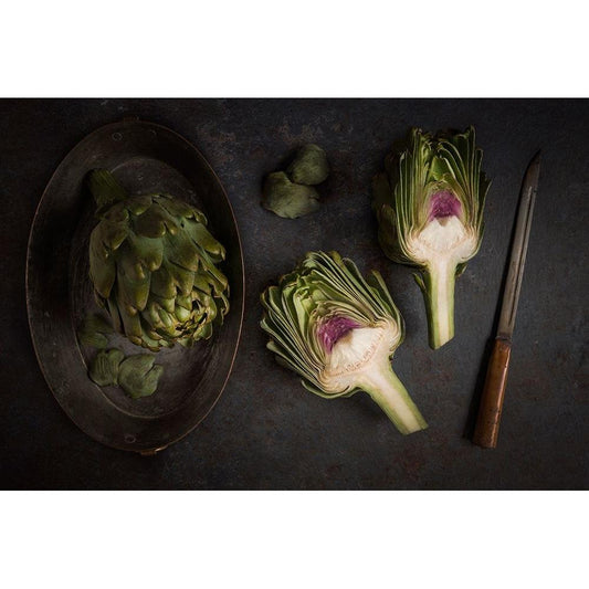Artichokes Black Modern Wood Framed Art Print with Double Matting by Popescu, Diana