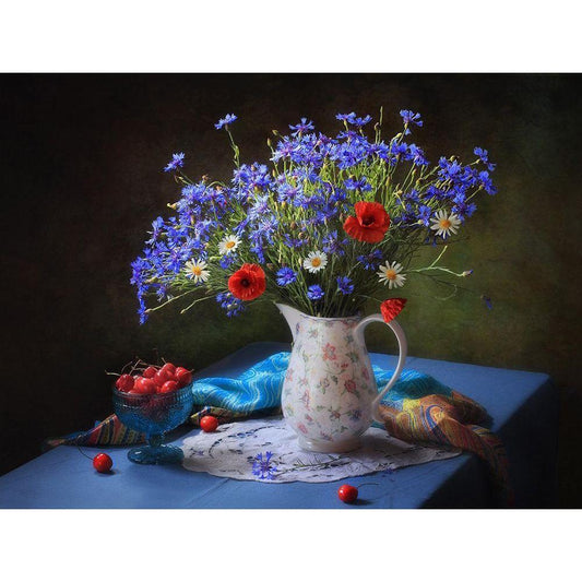Summer Still Life With Wildflowers Black Modern Wood Framed Art Print with Double Matting by Skorokhod, Tatyana