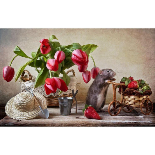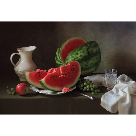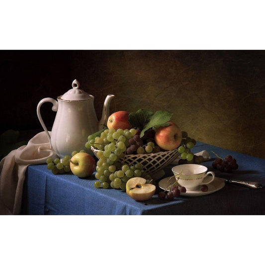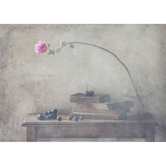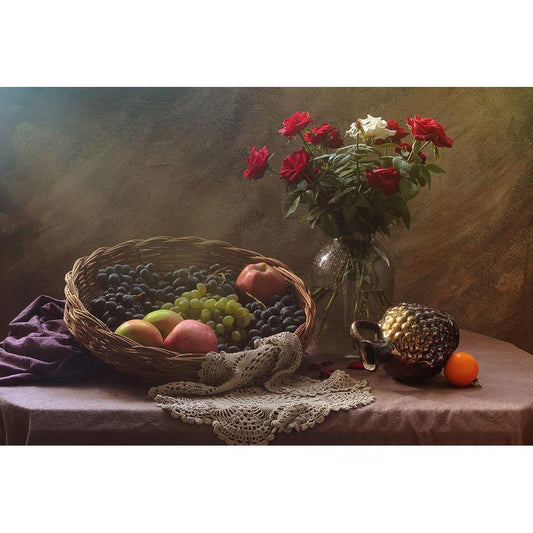 Still Life With Fruit And Roses Black Modern Wood Framed Art Print with Double Matting by Ustinagreen