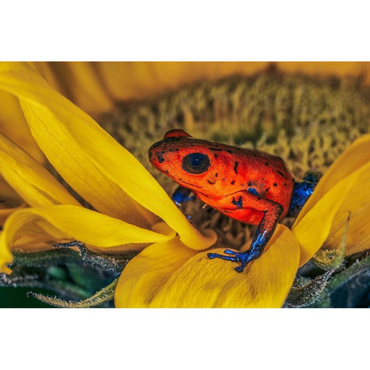 Blue-jean frog-Strawberry poison dart frog Black Modern Wood Framed Art Print with Double Matting by Jones, Adam