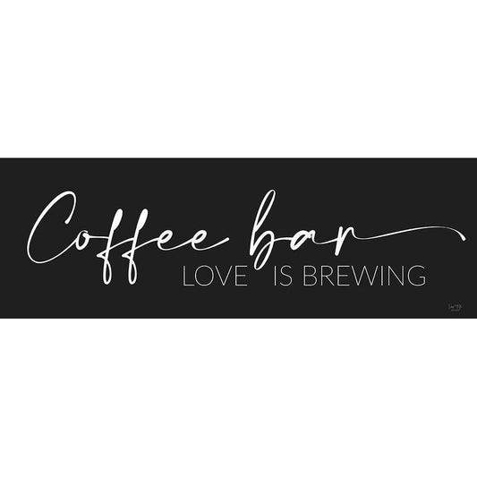Coffee Bar - Love is Brewing Black Modern Wood Framed Art Print with Double Matting by Lux + Me Designs