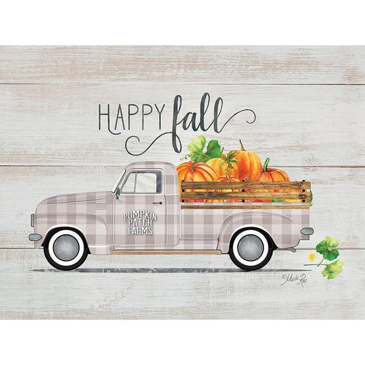 Happy Fall Vintage Truck Black Modern Wood Framed Art Print with Double Matting by Rae, Marla
