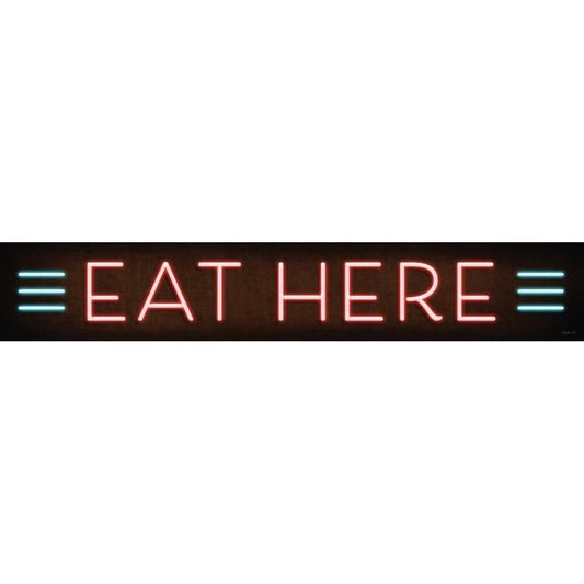 Neon Eat Here Black Modern Wood Framed Art Print with Double Matting by Mollie B.