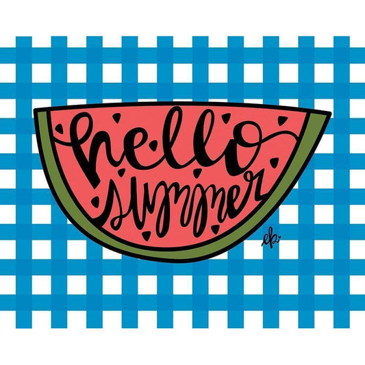 Hello Summer Watermelon Black Modern Wood Framed Art Print with Double Matting by Barrett, Erin