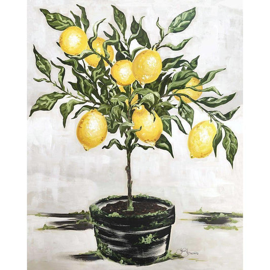 Lemon Tree Black Modern Wood Framed Art Print with Double Matting by Hollihocks Art