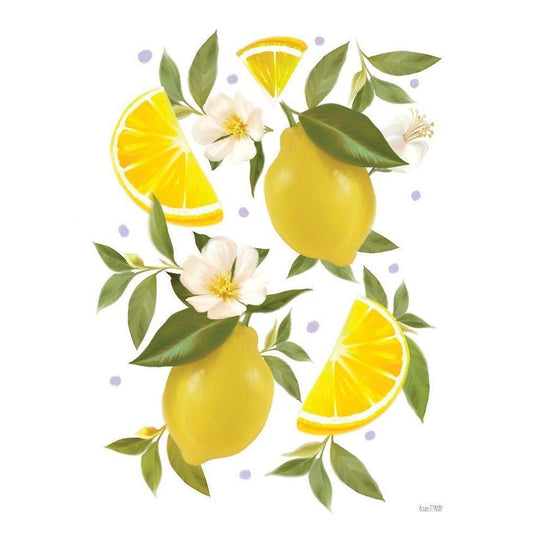 Citrus Lemon Botanical Black Modern Wood Framed Art Print with Double Matting by House Fenway