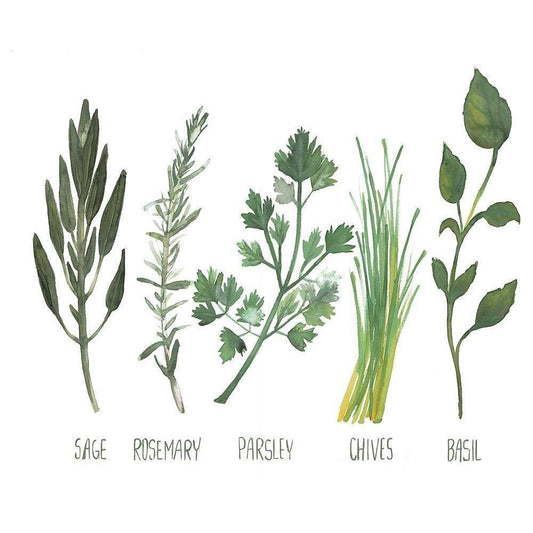 Watercolor Herbs Black Modern Wood Framed Art Print with Double Matting by Dogwood Portfolio