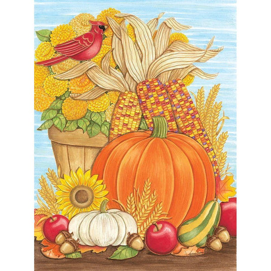 Fall Pumpkin And Cardinal Black Modern Wood Framed Art Print with Double Matting by Strain, Deb