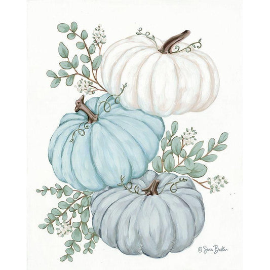 Pumpkin Trio Black Modern Wood Framed Art Print with Double Matting by Baker, Sara