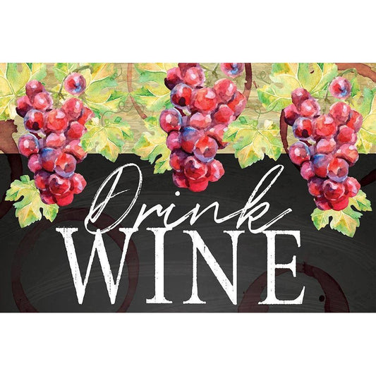Drink Wine Black Modern Wood Framed Art Print with Double Matting by ND Art