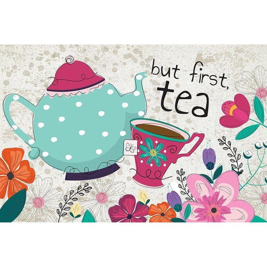 But First Tea Black Modern Wood Framed Art Print with Double Matting by ND Art