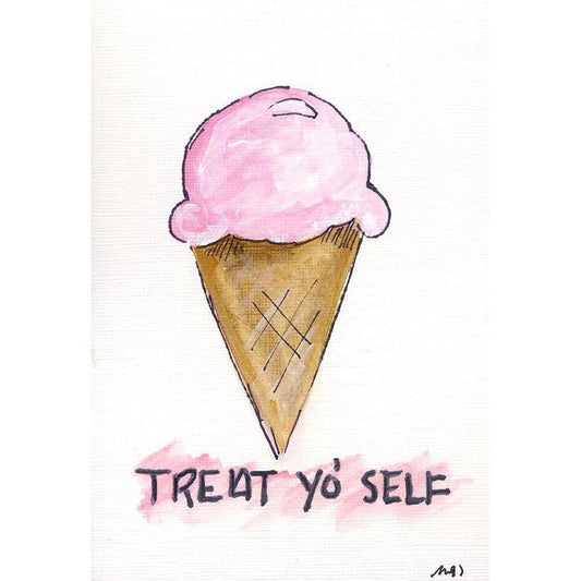 Treat Yo Self Black Modern Wood Framed Art Print with Double Matting by Strong, Molly Susan