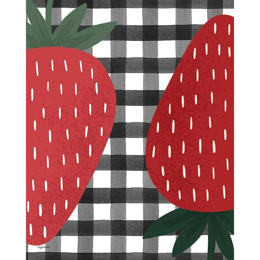 Plaid Strawberry Black Modern Wood Framed Art Print with Double Matting by Brown, Kyra