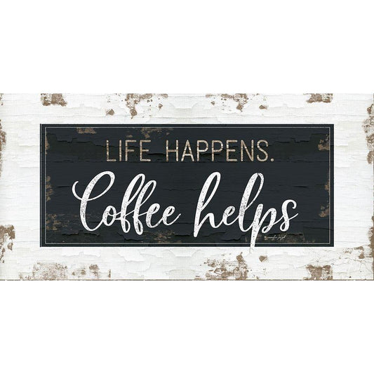 Life Happens, Coffee Helps Black Modern Wood Framed Art Print with Double Matting by Pugh, Jennifer