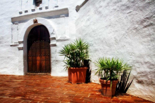 Old California Mission I White Modern Wood Framed Art Print with Double Matting by Hausenflock, Alan