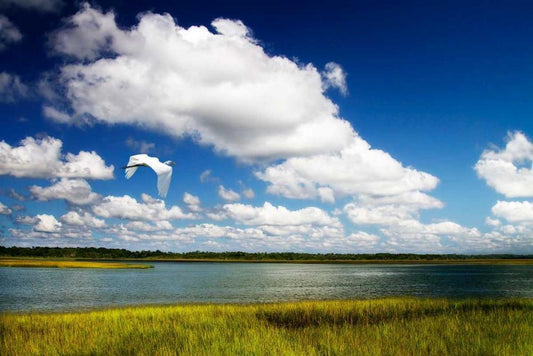 Wetland Herons I White Modern Wood Framed Art Print with Double Matting by Hausenflock, Alan