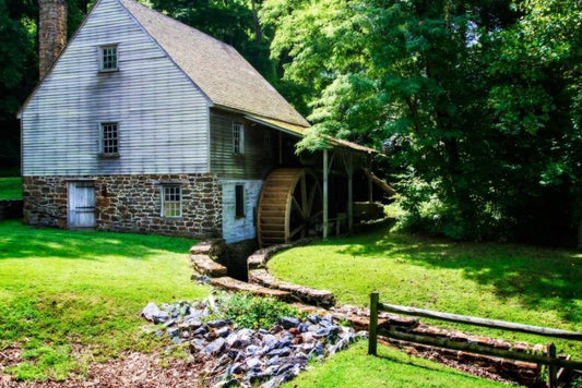 18th Century Grist Mill II White Modern Wood Framed Art Print with Double Matting by Hausenflock, Alan