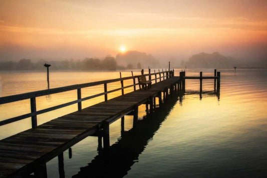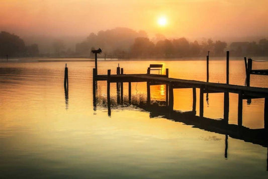 Potomac Sunset II White Modern Wood Framed Art Print with Double Matting by Hausenflock, Alan
