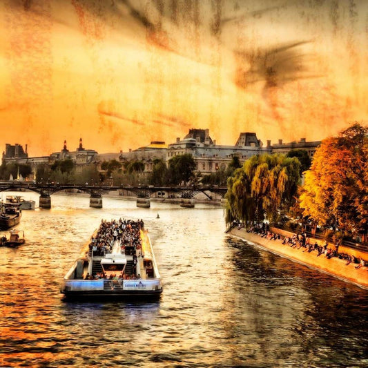 River Seine at Sunset I White Modern Wood Framed Art Print with Double Matting by Hausenflock, Alan