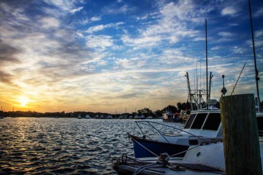 Beaufort Docks II White Modern Wood Framed Art Print with Double Matting by Hausenflock, Alan