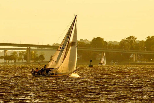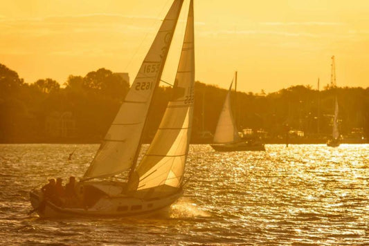Sailing at Dusk I White Modern Wood Framed Art Print with Double Matting by Hausenflock, Alan