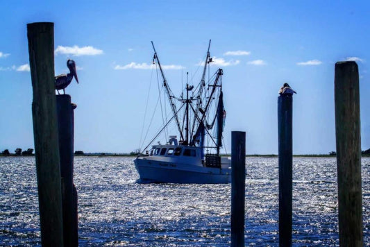 Deadrise Boats White Modern Wood Framed Art Print with Double Matting by Hausenflock, Alan