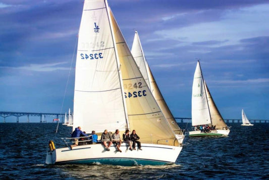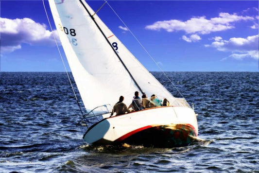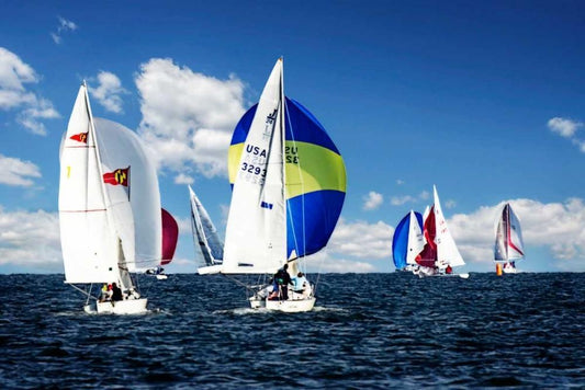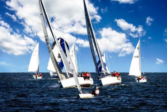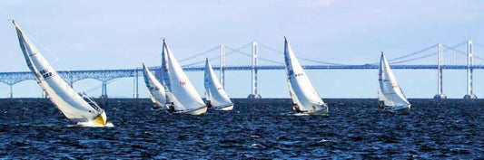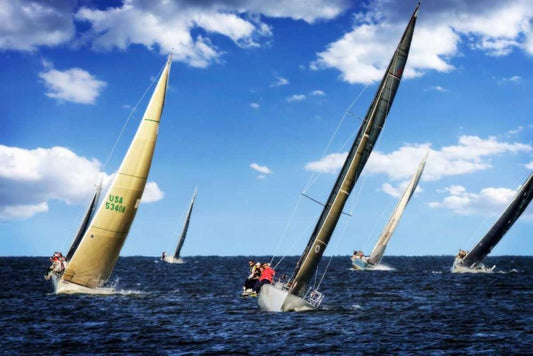 Close Hauled Flotilla II White Modern Wood Framed Art Print with Double Matting by Hausenflock, Alan