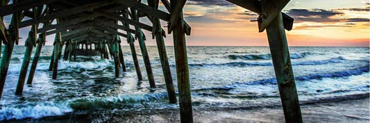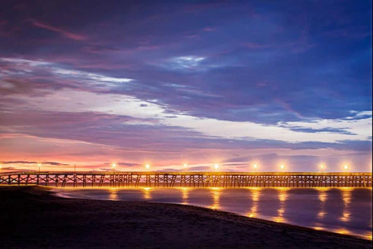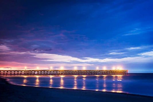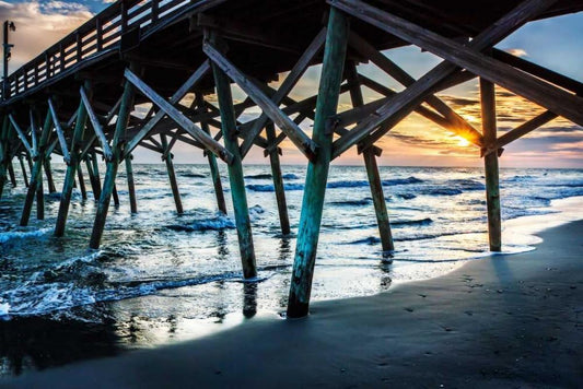 Surfside Pier Sunrise II White Modern Wood Framed Art Print with Double Matting by Hausenflock, Alan