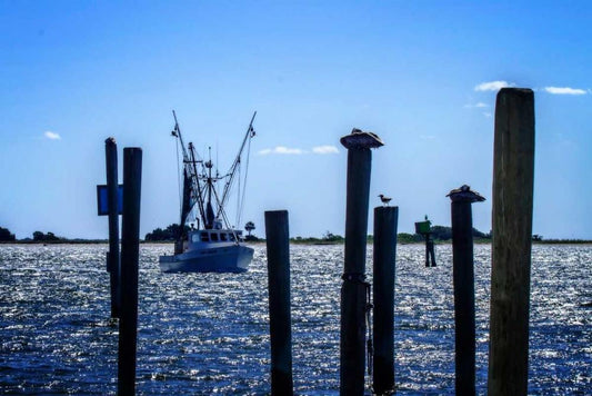 Bringing The Catch In I White Modern Wood Framed Art Print with Double Matting by Hausenflock, Alan