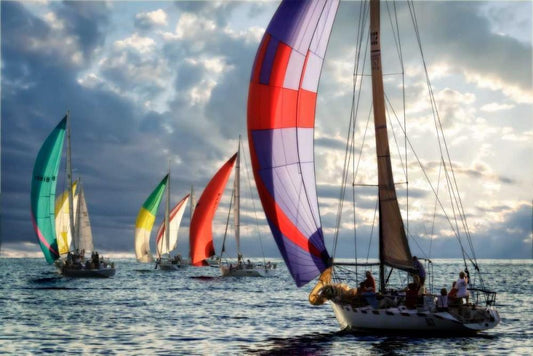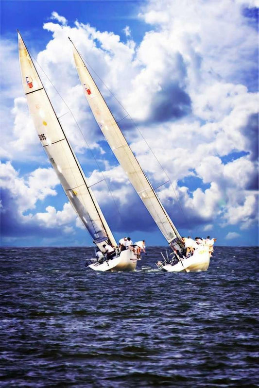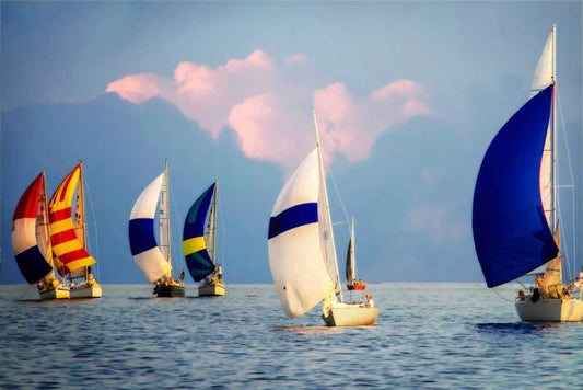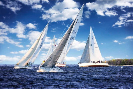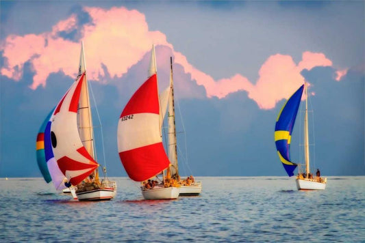 Day Sailing I White Modern Wood Framed Art Print with Double Matting by Hausenflock, Alan