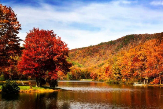 Mountain Lake Autumn White Modern Wood Framed Art Print with Double Matting by Hausenflock, Alan