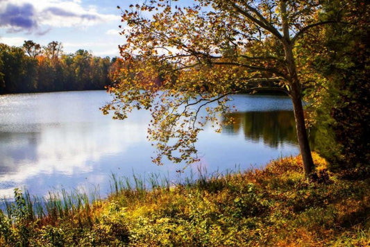 Horseshoe Lake in Autumn White Modern Wood Framed Art Print with Double Matting by Hausenflock, Alan
