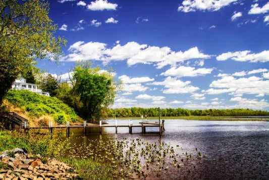 Mattaponi River House White Modern Wood Framed Art Print with Double Matting by Hausenflock, Alan