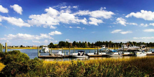 Waterway Dock II White Modern Wood Framed Art Print with Double Matting by Hausenflock, Alan