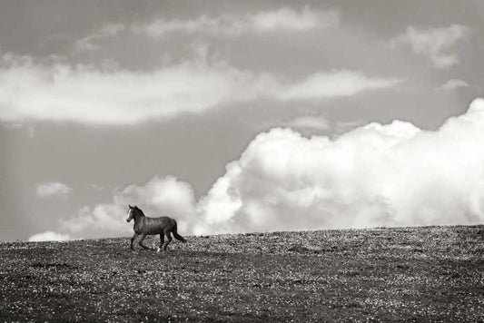 Horses in the Clouds II - BW White Modern Wood Framed Art Print with Double Matting by Hausenflock, Alan
