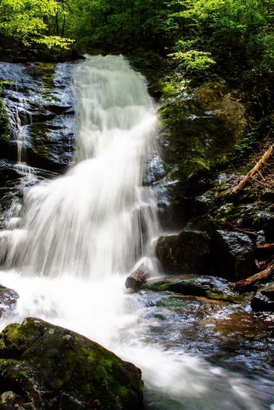 Deep Woods Waterfall II White Modern Wood Framed Art Print with Double Matting by Hausenflock, Alan