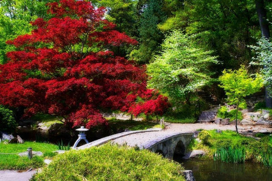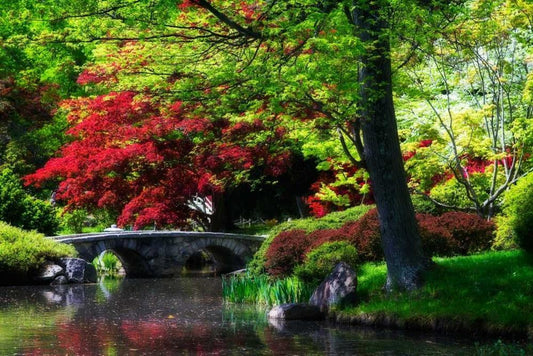 Garden Bridge II White Modern Wood Framed Art Print with Double Matting by Hausenflock, Alan