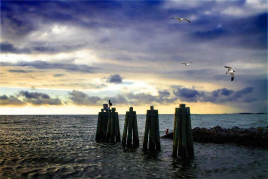 Cedar Island Quay I White Modern Wood Framed Art Print with Double Matting by Hausenflock, Alan