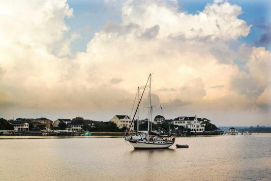 Cedar Island Quay II White Modern Wood Framed Art Print with Double Matting by Hausenflock, Alan