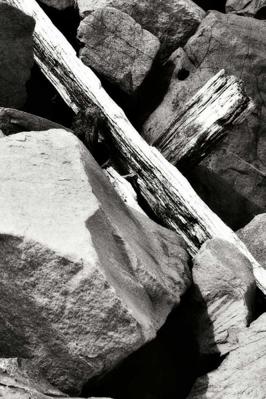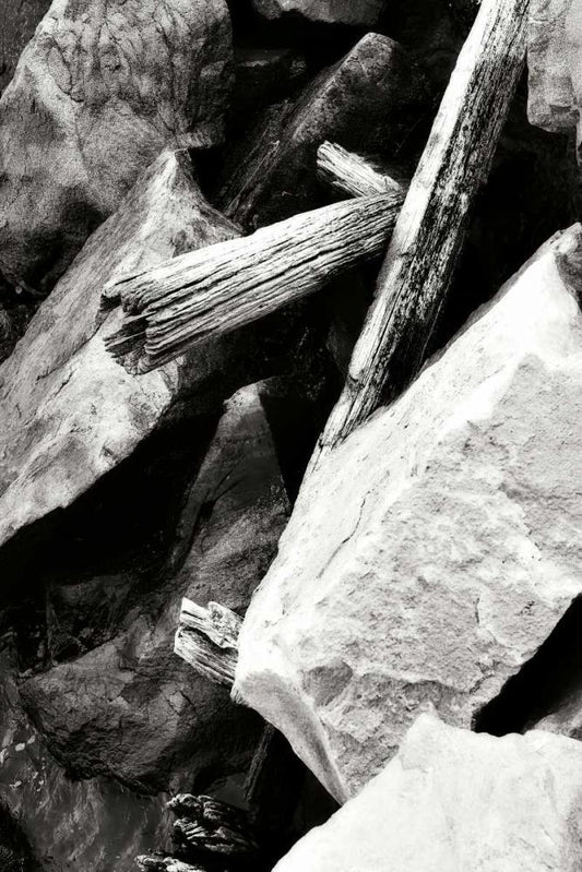 Rocks and Wood I BW White Modern Wood Framed Art Print with Double Matting by Hausenflock, Alan