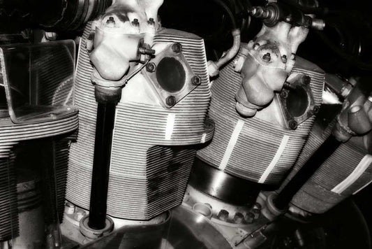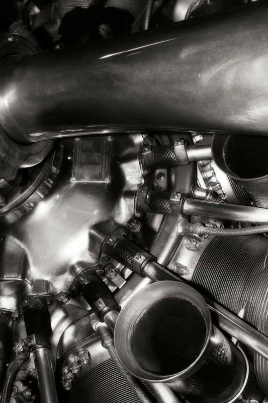 Engine I White Modern Wood Framed Art Print with Double Matting by Hausenflock, Alan