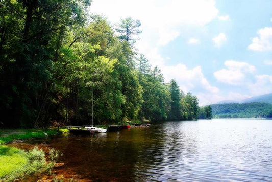 Douthat Lake VI White Modern Wood Framed Art Print with Double Matting by Hausenflock, Alan
