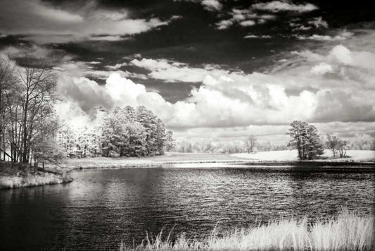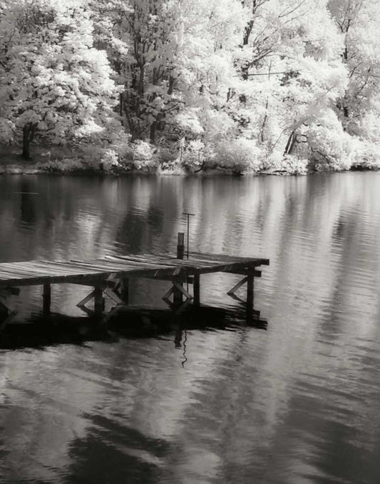 Mint Springs Lake BW V White Modern Wood Framed Art Print with Double Matting by Hausenflock, Alan