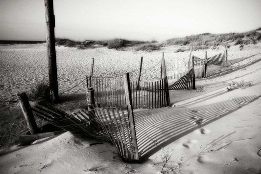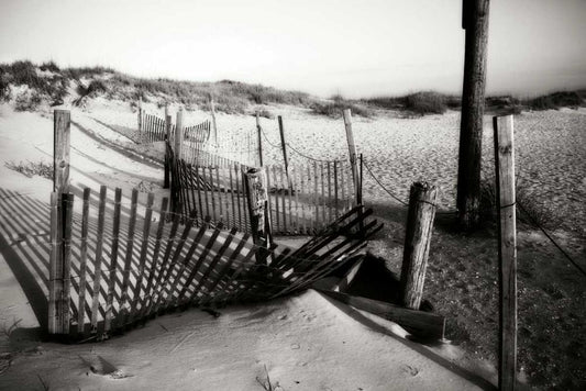 Dunes Fence IV White Modern Wood Framed Art Print with Double Matting by Hausenflock, Alan