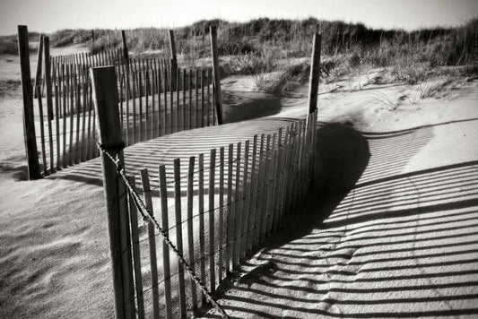 Dunes Fence I White Modern Wood Framed Art Print with Double Matting by Hausenflock, Alan