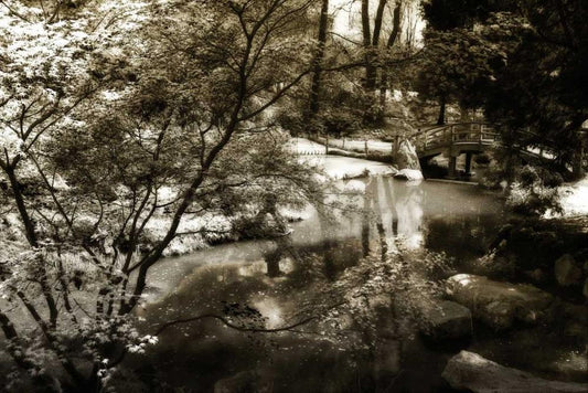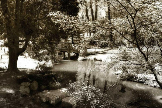 Garden Bridge I White Modern Wood Framed Art Print with Double Matting by Hausenflock, Alan