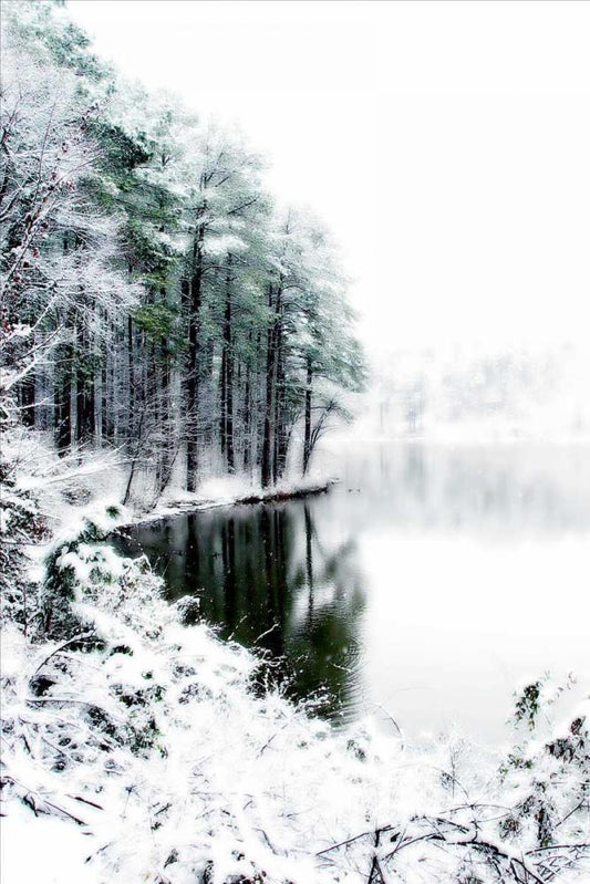Shelly Lake in Winter II White Modern Wood Framed Art Print with Double Matting by Hausenflock, Alan