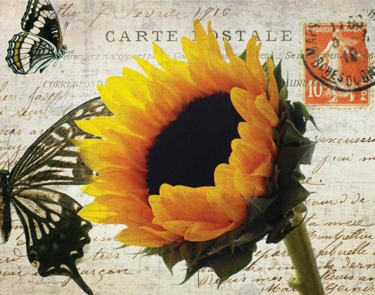 Carte Postale Sunflowers II White Modern Wood Framed Art Print with Double Matting by Paton, Julie